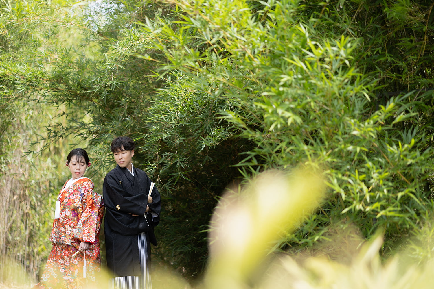 年中安定した景観の中で写真を残せることが、竹林ロケのメリットです。